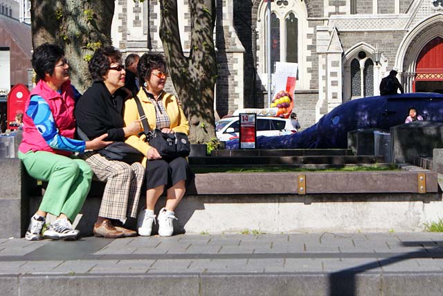 Some lovely lady tourists getting their photo taken in cathedral square.