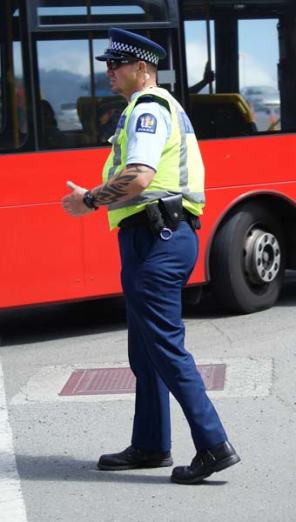 A big wow for the acrobats! Tattoos and earrings? He looks pretty cool for a cop!
