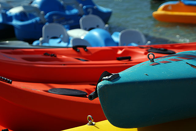 A colourful mix of canoes and paddle boats spotted at Akaroa.