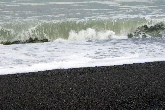 The very powerful waves crashing on the beach at Birdling’s Flat. It makes quite a roar. It would be like being in a washing machine.