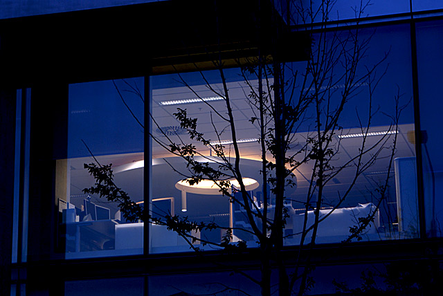 Lights on in an office down Madras Street.