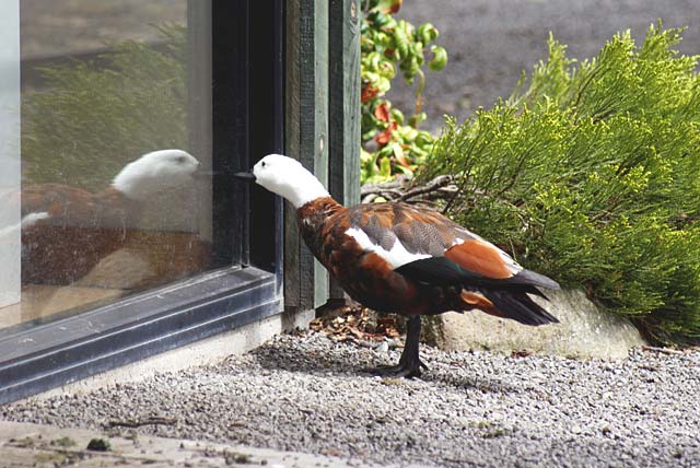 I went for a stroll through the botanic gardens today and took dozens of photos of flowers – once I start I can’t seem to stop snapping them. I’d put the camera away and was walking back to the car park when I spotted this Paradise duck checking out its reflection in the window of the information centre. Needless to say the camera came out pretty quickly!