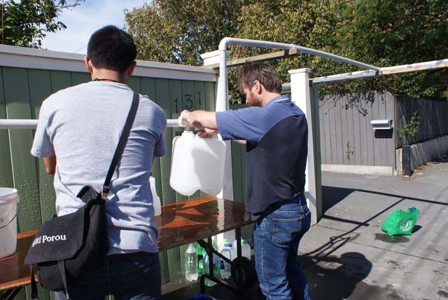 Today we focused on more of our own clean up (it seems to never end), and we then ventured out to visit friends nearby and collect water from an artesian well that was near their place (it’s on Opawa road near the shops). I’m not entirely sure if the well just came up, but the people who’s land it is on have rigged up some pipes, and everyone in the neighborhood can go down and fill up. Quite a new experience for us!