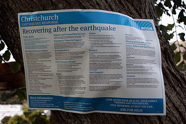 I came across this poster stapled to a tree in a local park. It has lots of information and tips on how to recover after an earthquake. I didn’t see ‘deep breathing’ on the list of things to do, but I certainly recommend it!