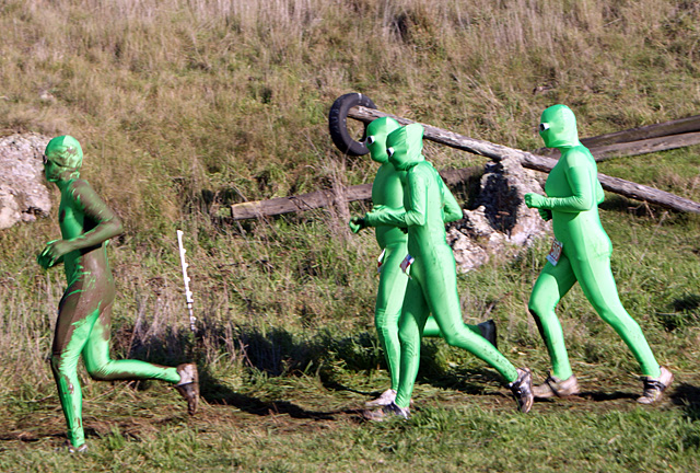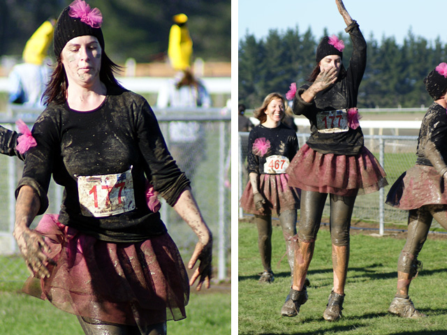 I went out to the Motukarara Race Course this morning with my photo club, to photograph the Mud Sweat and Tears cross country race. It’s a 5 or 10 km race and as you can see competitors are encouraged to dress up in costume and get as wet and as muddy as they possibly can (the fact that the organisers hose them down and make them slide down a hill into a muddy paddock certainly helps with the later!). Some of the runners made it look very easy!