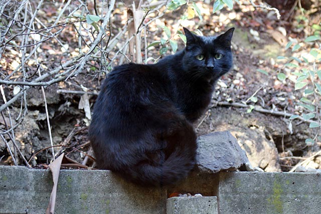 I work from home, which can be rather solitary at times. But the neighbourhood cats keep things interesting! They’ve taken to sitting on our (partially collapsed) retaining wall. So they can peer down into my office. This little black cat is usually here most days, but still seems very surprised to see me!