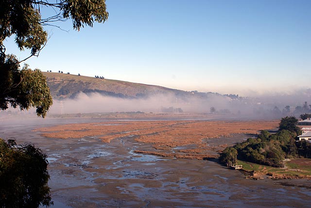 Bit of a misty start this morning – it was a total white out for a while and then it lifted and I could see some of the remains of the mist in the Heathcote Valley.