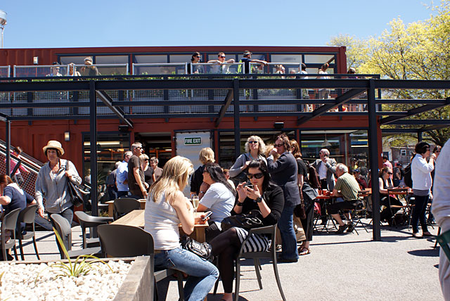 The crowd was quietly excited if there is such a thing. I understand some people were probably nervous or felt a bit funny about going into the mall – it was the scene of so much carnage and destruction and personal tragedy. I was not in the mall on the day of the quake, so I was feeling more excited than nervous about what I was going to see. As a city we desperately need to put some live back into the central city and have somewhere that is buzzing and vibrant. So I was very pleased that so many people have turned out to support this ‘Re-Start’ initiative. It’s a temporary shopping precinct developed with shipping containers. But the containers are done up so well there is no way you’d really know you were in a container. There’s lots of shops and cafes and of-course the iconic Ballantynes department store has re-opened as well. I can see what will happen with this area – the developments will slowly creep out into the main streets where we still have buildings as the foot traffic comes back to this area. That will be a great thing indeed.