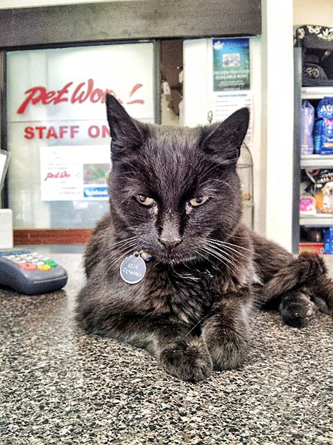 This is Louie the resident cat at Pet World – which is located on the corner of Ferry Road and Smith Street in the suburb of Woolston. He wasn’t too fussed about getting his photo taken – refusing to look at the camera despite my best attempts to get his attention. But sure enough, as soon as I put the camera down he put on his best customer service role and got all smoochy with me and the other customers there. He can often be found either sitting on the counter or perched on top of the till (no doubt he’s a very fiscally aware feline)…