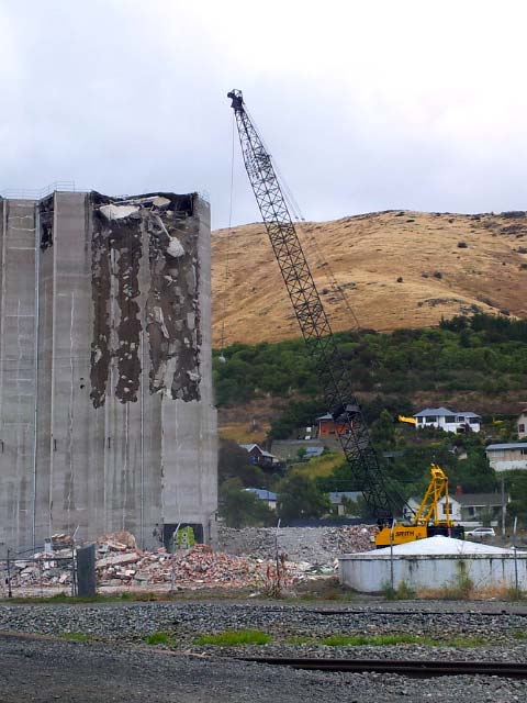 Anyone familiar with the Heathcote Valley will recognise the silos from the Maltworks. They rather stand out in the valley and are something of an eyesore (though I have met people who actually like them). Well each to his own I guess, but whatever your opinion of the view, the fact is they are coming down (much to the relief of many Heathcote residents – including the one I met today who was very excited about them coming down).