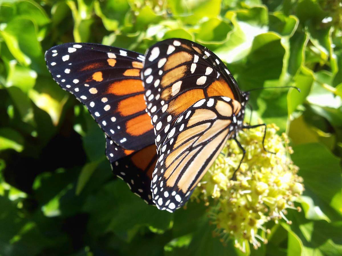 A monarch butterfly that happened to flutter in my direction at lunchtime today. There are a few of them about now and I have a few swan plants with Monarch caterpillars on them – they’ve got a bit of growing to do yet before they go into their cocoon.