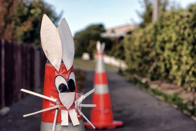These cones are in Mt Pleasant and I saw photos of them on the Mt Pleasant Community Facebook page yesterday so had to go and check them out for myself this morning. So fantastic! And maybe just a little ‘scary bunny’ too 🙂 – both Bruce and I think the bunnies look like they’ve just popped up to scare me!