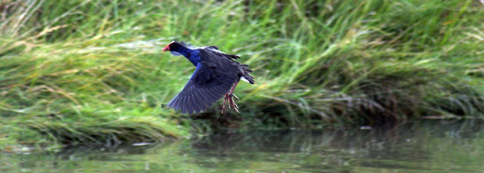 As for the Pukeko, I was trying to get a close up, but it wasn’t too keen about this photo opportunity and kept taking off. So instead I got this mid flight shot of it which I was quite happy with as it sort of shows just how awkward these birds are when they fly!