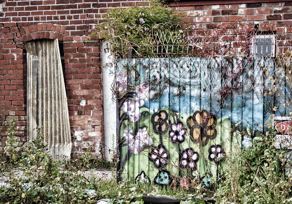 From St Asaph Street, you can view the back of all of the High Street buildings – including this fence with some lovely flowers painted on it.