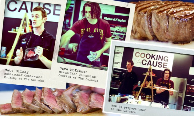 For the last few weeks the chefs from The George Hotel have been doing cooking demonstrations at The Colombo shopping centre on Colombo Street. I finally got down there today to check things out. Two of the MasterChef contestants (Matt and Dave) were there this morning cooking Hereford Beef.