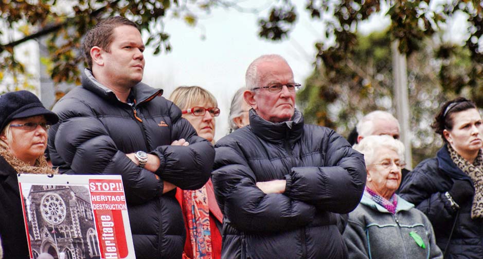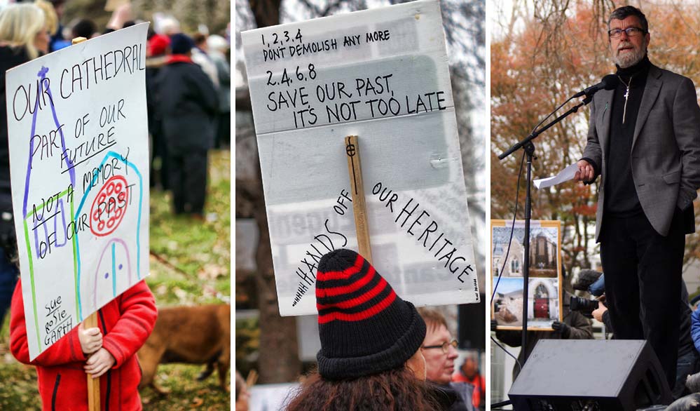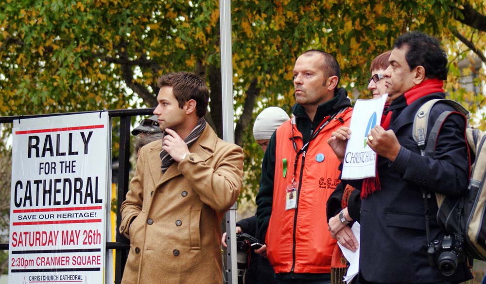 A few shots from the rally to save the Christchurch Cathedral – held today in Cranmer Square. Quite a few civic leaders past and present spoke in favour of halting further demolition of the cathedral.