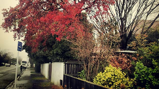 As I write this, the sun is shining, finally. But, as you can see from this Instagram photo, it was pretty grey and overcast earlier today. This tree on Papanui Road was just begging to be photographed – it was a bright spot of cheerful red on a gloomy winter’s day.