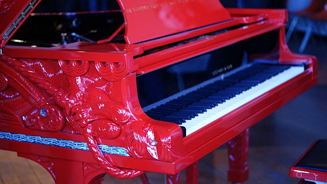 This is the beautiful carved red Steinway piano at the Michael Parekowhai exhibition (On First Looking into Chapman’s Homer) at NG on Madras Street. People are very drawn to the piano.