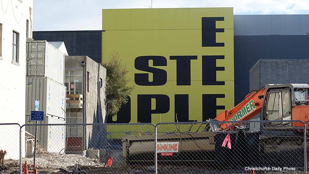 This mural reads Steeple, People (or the other way round if you like) and is of course a reference to the Christchurch Cathedral and the children’s finger game. It’s on the rear wall of the Art Gallery building. You can read more about the mural on the Art Gallery’s website