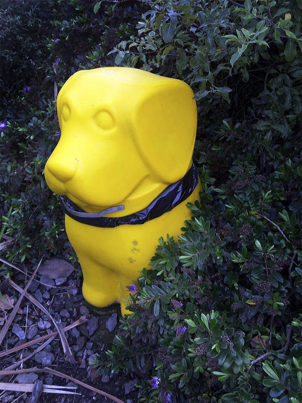 A dog-shaped rubbish bin for doggie do. Spotted in Ferrymead. And I even saw a lovely and very responsible dog walker using it.