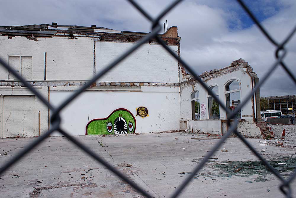 This building (well ruin really) is on Madras street right by the NG building. I spent a few hours walking around the city this lunchtime and it’s still a surreal experience. Sometimes I think ‘wow did this really happen?’. It still seems so odd that my city has suffered so much loss and destruction. And yet, at the same time, I can go about my business most days of the week and turn off to what I see – I have to some extent become de-sensitised to constant road works, cranes, ruined buildings, half de-constructed buildings, pop-up food and coffee stalls, and very damaged homes. After a while it becomes the norm. But then, I have those moments when it all just seems too weird to be real.