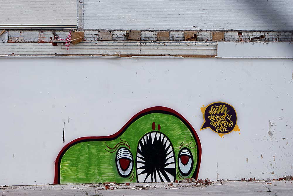 I’m not sure what the green graffiti art is supposed to be, some kind of monster perhaps? A reference to something I’m not aware of maybe? Whatever it is, they were pushing their luck doing it on that wall!