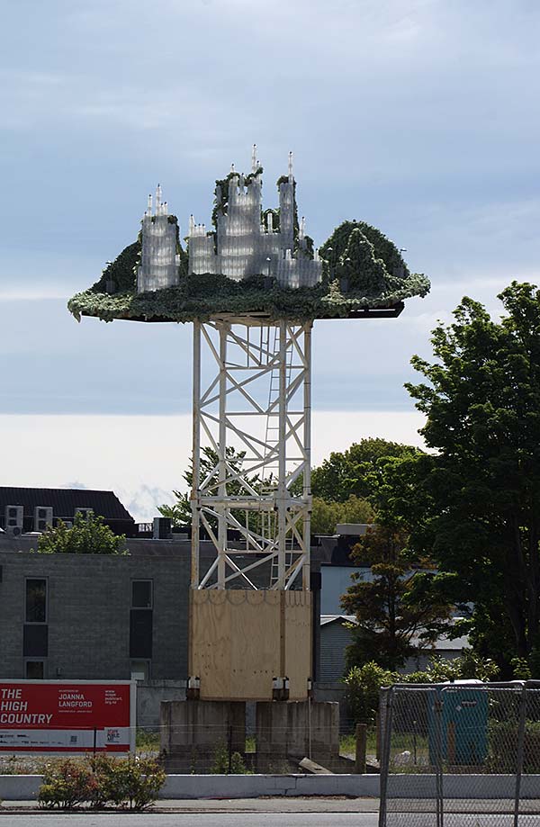 This is The High Country by Joanna Langford. It is an art installation that can be seen on the corner of orner Montreal and Kilmore Streets. To learn more about it visit http://www.scapebiennial.org.nz/artists/joanna-langford