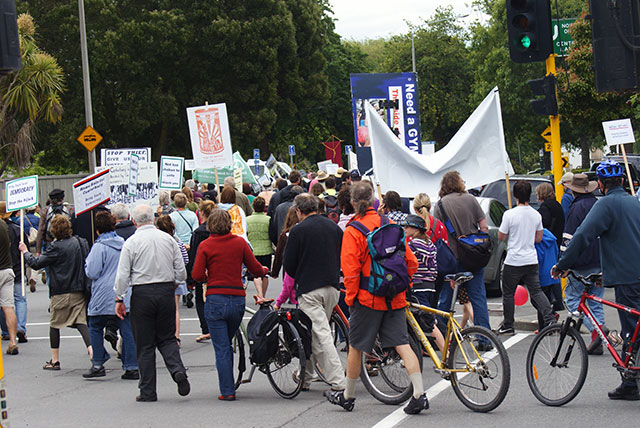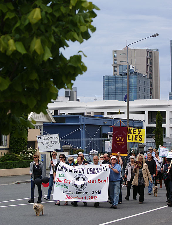 There was a street rally today, calling for democracy to be restored to Christchurch. Since our earthquakes the central government agencies appointed to the rebuild and recovery of Christchurch have had quite sweeping powers (for example they’ll be able to compulsorily acquire land from landowners if negotiations to buy buildings in the CBD falter).