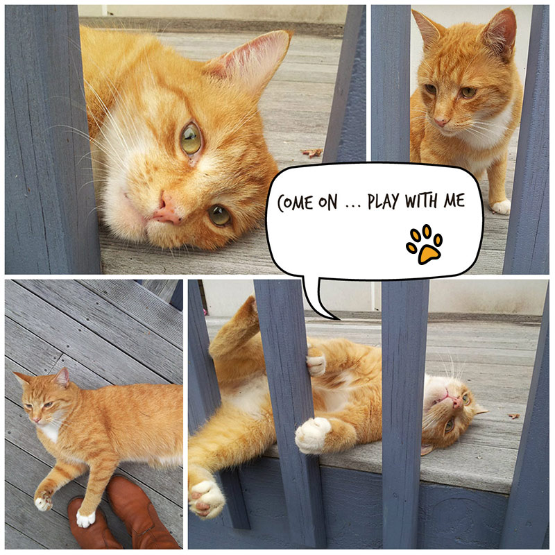 This is Marcel and he’s a lovely cat. He’s not mine, not even my neighbour’s cat. He’s technically my neighbour’s neighbours neighbours neighbours cat (well you get the idea). He lives down the road from me and though he has a perfectly good home with by all accounts loving owners, he’s the total opportunist and has a ‘second family’ that he visits during the day. I know the family he visits, so Marcel knows me too. So he was very intent on having me play with him today. He was a bit bored it seems. He spotted me walking past the driveway to his second family (who were out for lunch I think) and started meowing at me so plaintively, that I stopped to give him some attention. As I explained to him, I had to go and do some work, but he was not having any of that and grabbed me by the sleeve with his paws. I made my escape, and back to my afternoon of work.