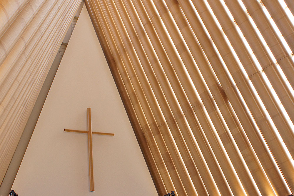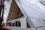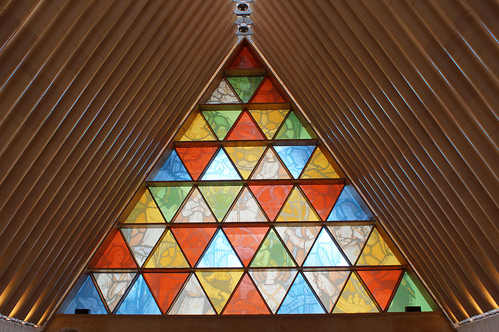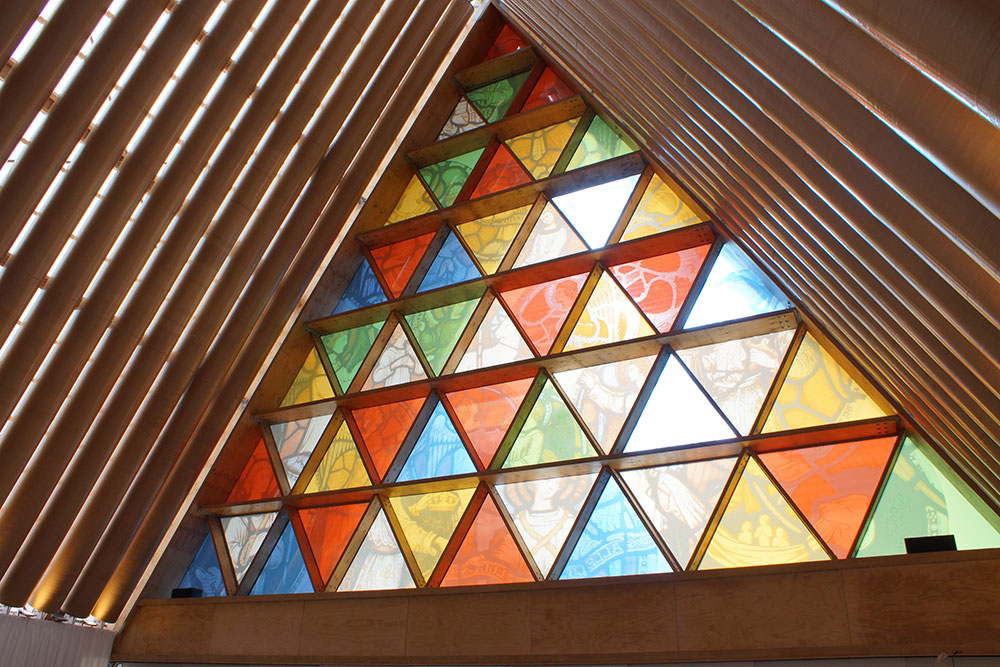 The Cardboard Cathedral was open to the public this week, so I took a look at it at noon today and then went back again a little later when the sun had come out. It’s a lovely space, it feels very inviting and the minimal design is very peaceful. I really like it and it is a fascinating subject to photograph with all of its triangles.