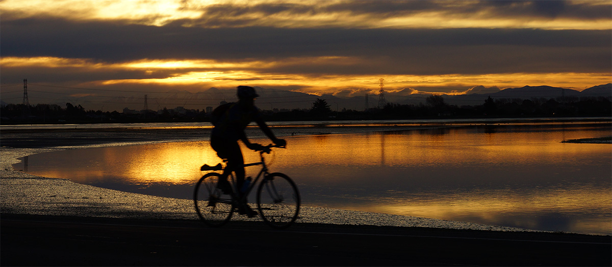 A cyclist making their way home along the estuary on Main Road tonight. I was out for a walk with my camera, as I often am, and decided to give it a bit of a test run with some dusk shots. This first picture is actually just a small section of the overall picture – which is shown below.