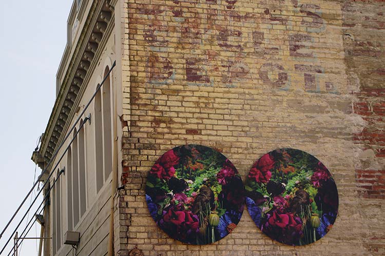 These artworks are by Michaela Cox and can be seen around the city. This one is on a building in High Street just opposite the C4 Coffee building.