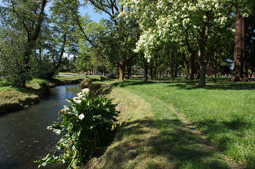 The Heathcote River by Cashmere Road is quite fast moving and also very narrow. It gets much wider as it winds its way out to Ferrymead and finally meets the estuary.
