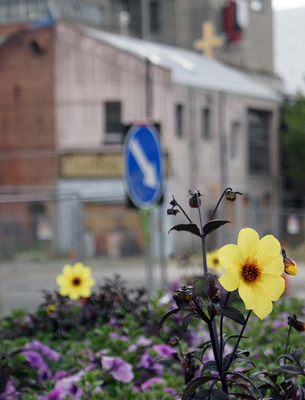 Flowers grow all around the city in nice little plots that are well maintained. The cheerfulness of the yellow flower is in stark contrast to the background – the buildings that used to make up what was known as SOL Square, which was a popular evening venue with bars and restaurants.