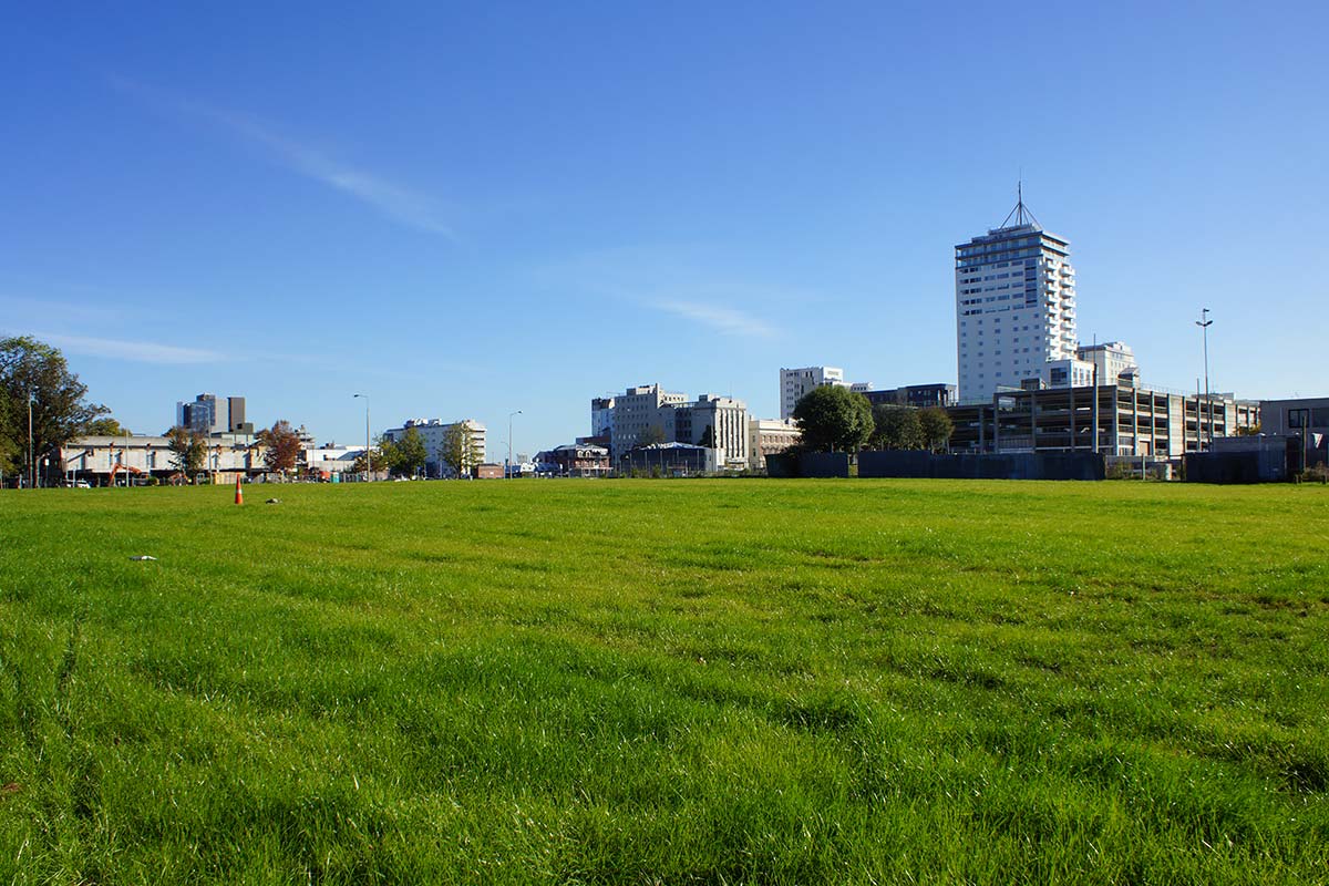 Taken today from the corner of Armagh Street and Madras Street. That’s a lot of grass. There was once upon a time a whole block of buildings. I’m not quite sure of the future of this area, I believe it will be part of the green ‘frame’ but have also heard there will be some residential development too.