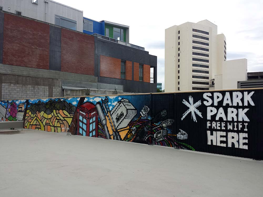 I’d heard about the Spark Park (Spark is our previously named NZ Telecom). But I hadn’t noticed the park in my walks around the city – I’d also obviously not gone look for it. Well, I finally saw it, and I’ve got to say my reaction was ‘underwhelmed’ – it’s entirely covered in concrete with concrete boxed seating. I’ve only photographed the most interesting part – the mural. It does indeed however have free wifi. See http://www.stuff.co.nz/the-press/news/10600226/Spark-yet-to-arrive-at-new-city-park for more info and a wide shot of the park.
