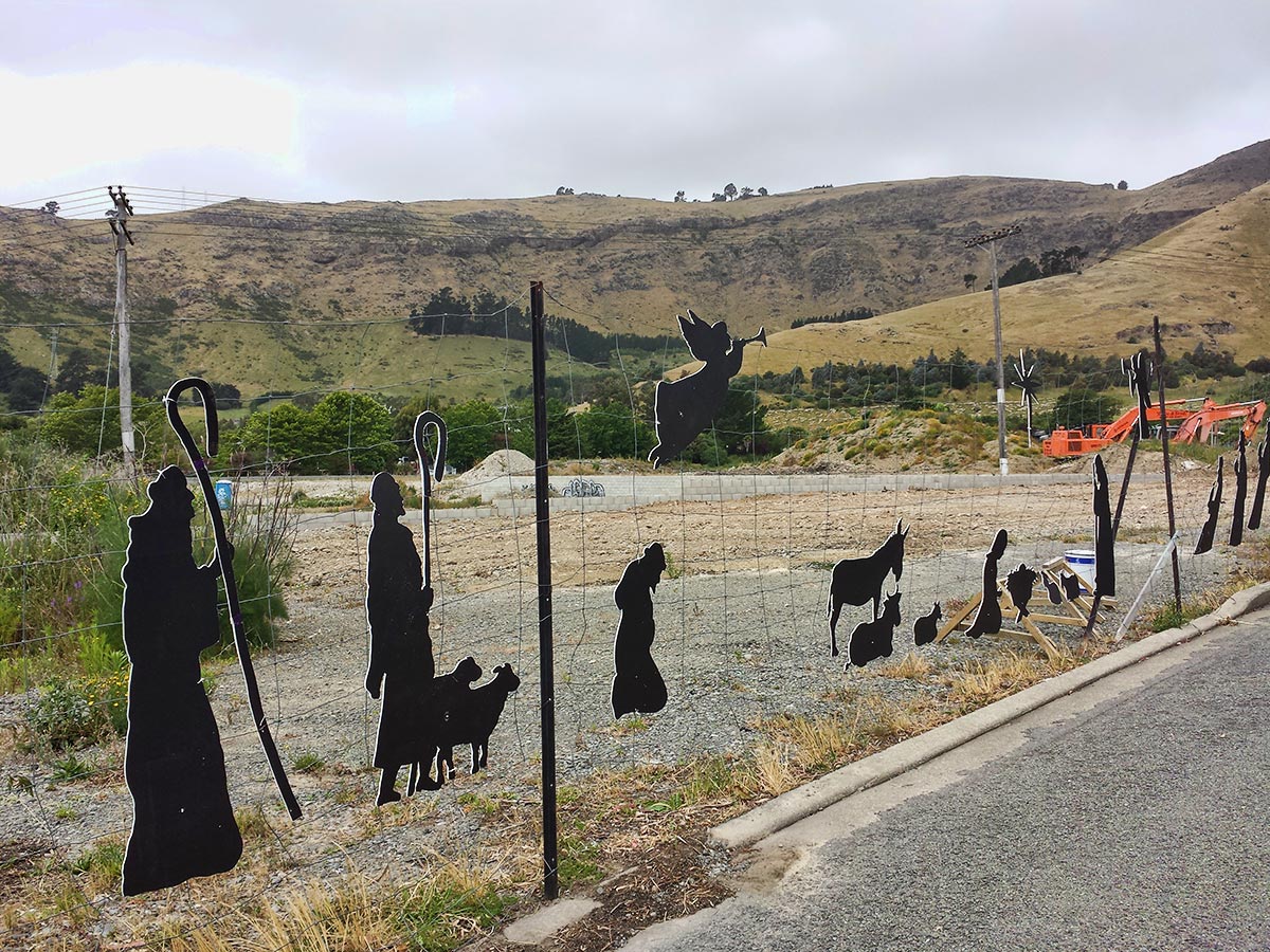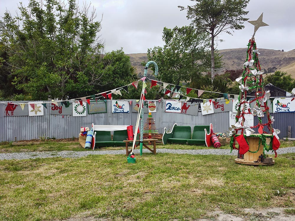 Someone has gone to a bit of trouble to decorate a small grassy area by the roundabout on Port Hills / Martindales Road.