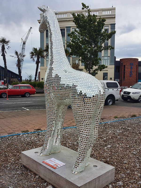 The reflecting Changes giraffe by Sarina Dickson can be seen on High Street.
