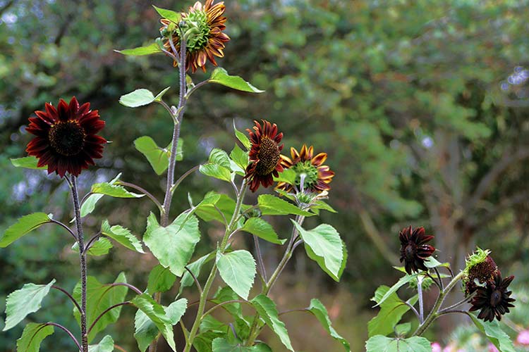 These ones are Moulin Rouge sunflowers and you can get multiple flowers on one plant but they don’t seem to last as long as the yellow varieties. Well, it’s been interesting and I’ve got a few new lessons learned about growing sunflowers that I’ll apply this year.