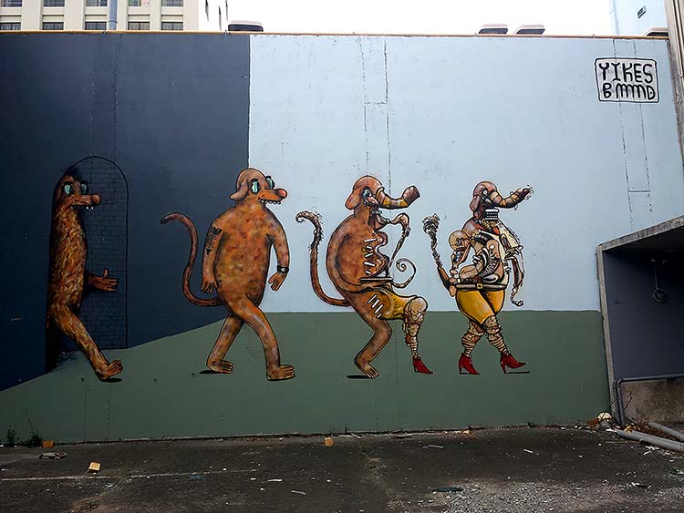 This piece of street art can be found by Hereford Street and is a joint artwork by http://bmdisyourfriend.com/outdoors/ and http://www.planetyikes.com/.