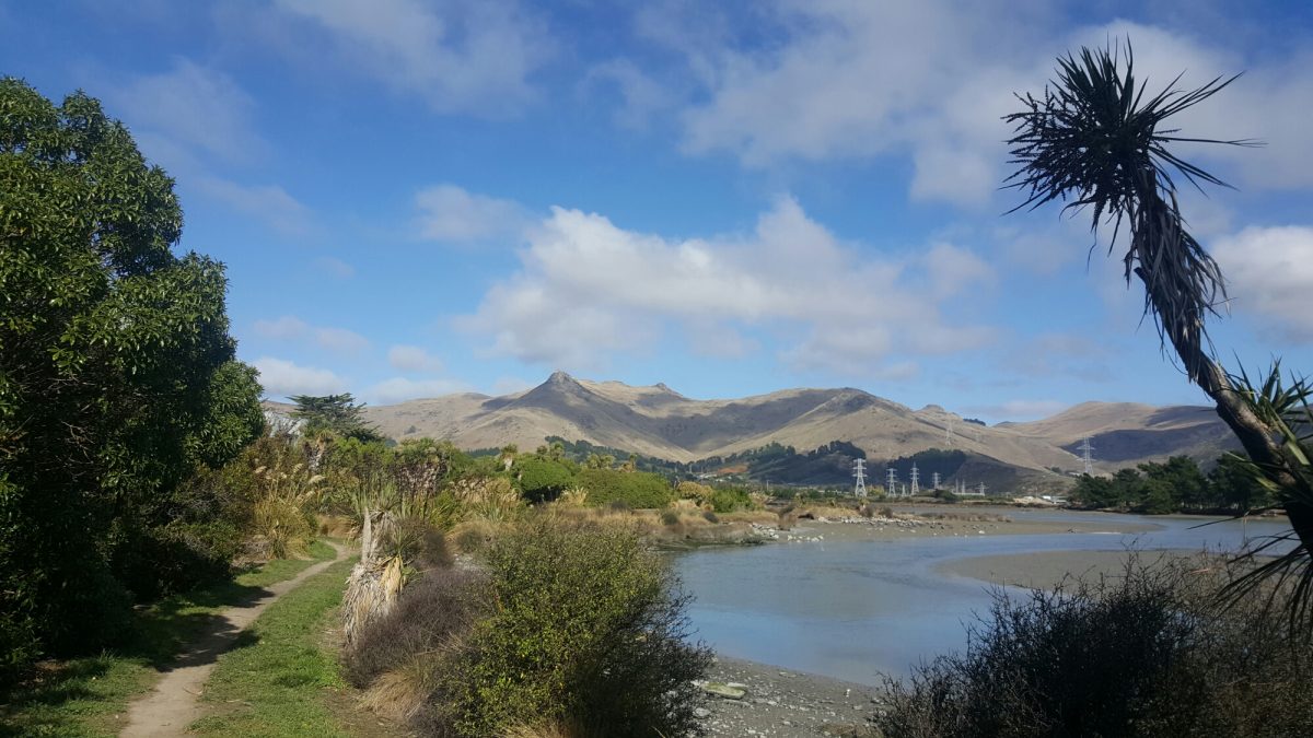 Beautiful view — so green along the Towpath, but the Port Hills look so very dry this year, and the Heathcote River…(?)