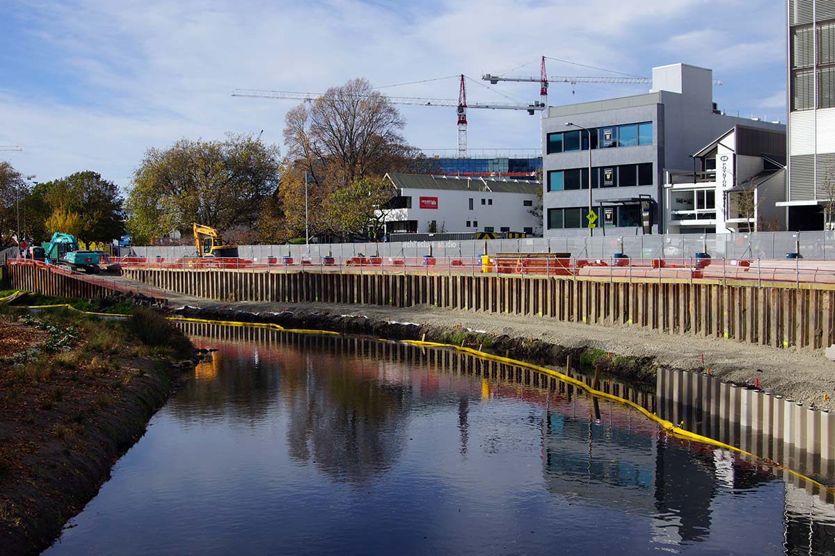 This section of the Avon River is where the earthquake memorial is being built. The final design consisted of a long wall and it’s clear to see this taking shape now. It’s expected to be finished in time for next year’s anniversary.