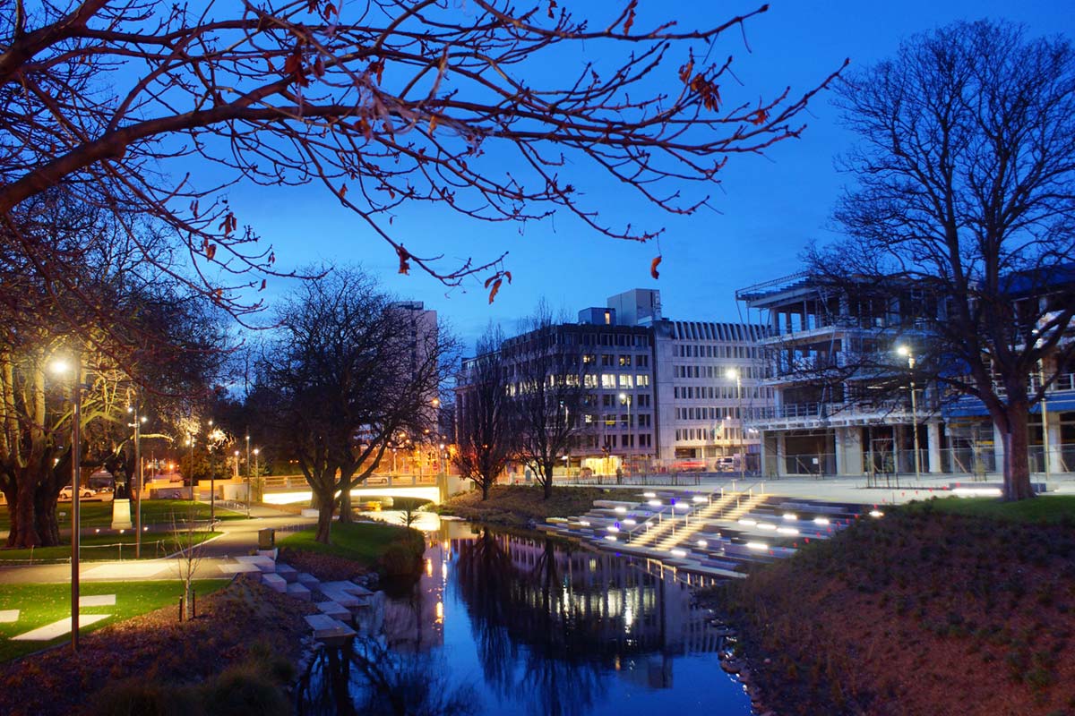 The Terraces with lighting – as seen from the Bridge of Remembrance. Imagine this spot in summer, with the building finished and lots of people out dining. Now won’t that be something!