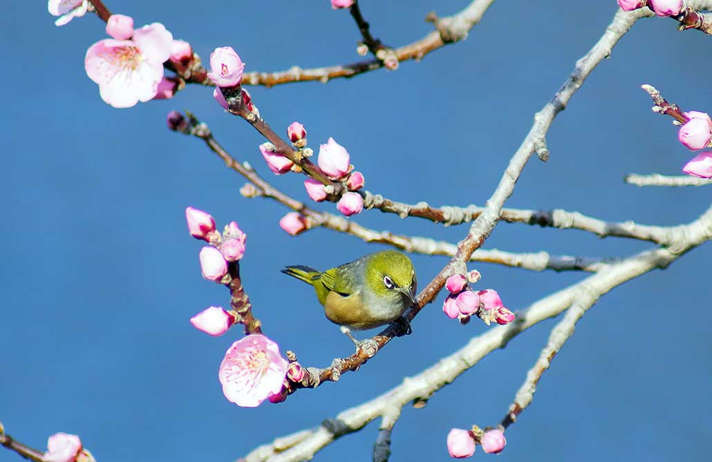 One of the early blossom trees in the city by the bridge on Durham Street, with quite a few waxeyes visiting.