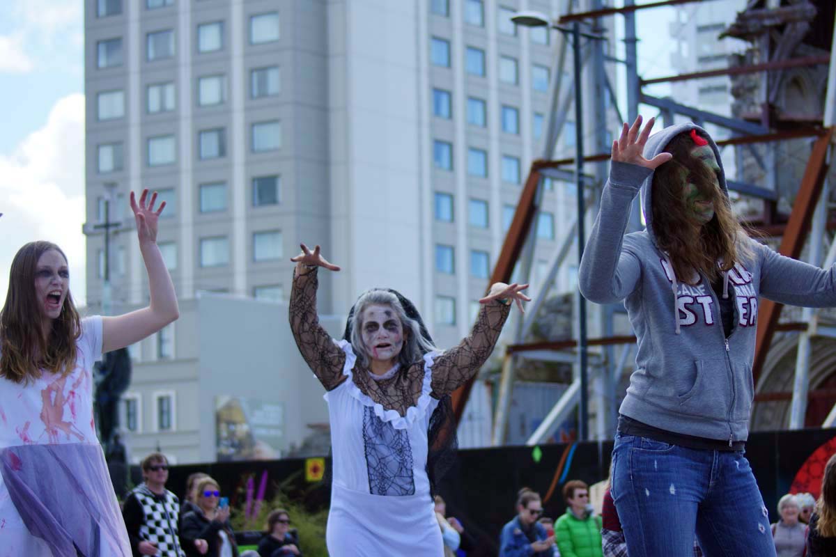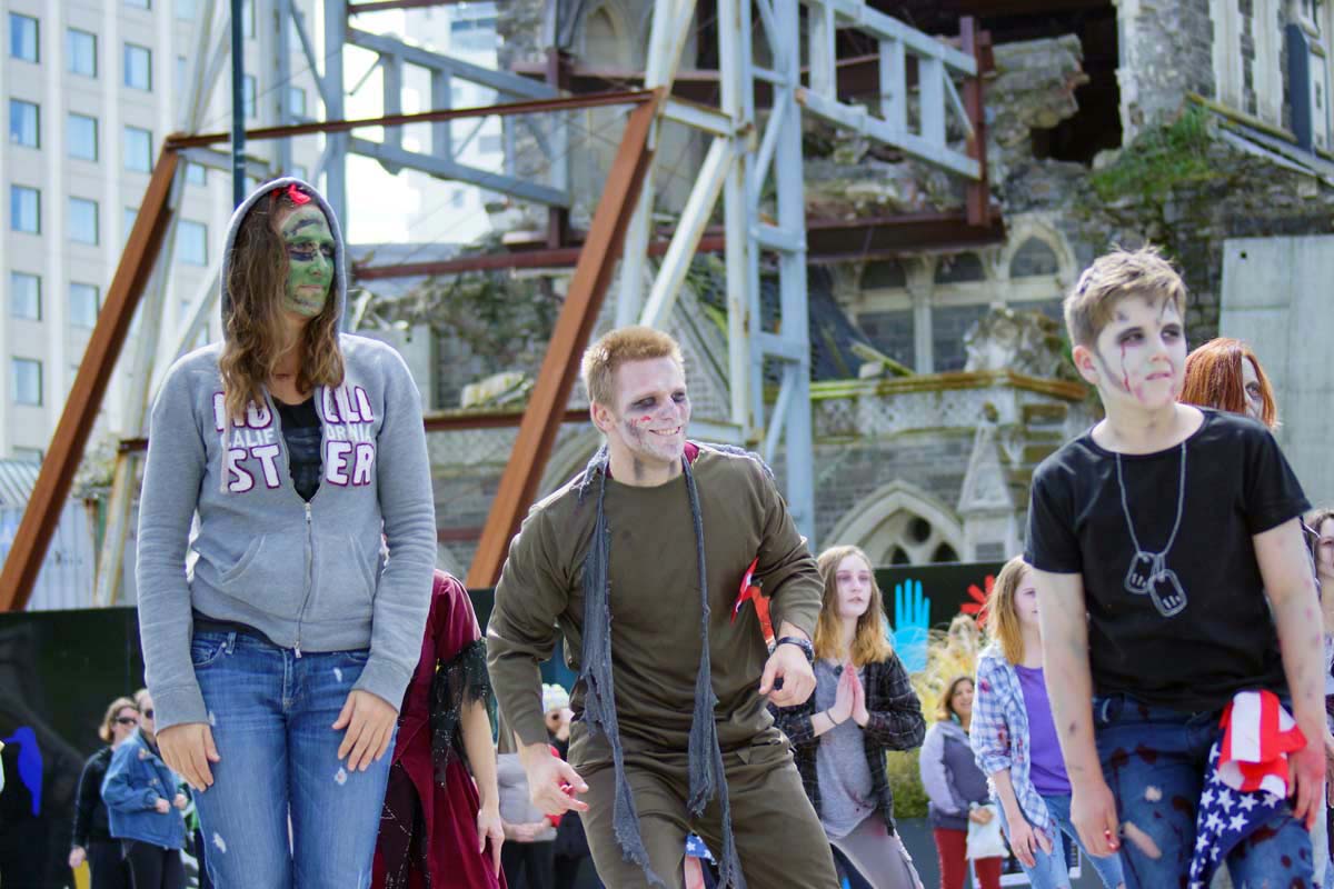 Thrill the World is a world-wide dance event where people dress up as Zombies and dance to Michael Jackson’s ‘Thriller’. Christchurch’s joined in and we had an interesting backdrop with the broken Cathedral. I actually participated in this event 7 years ago! It was a lot of fun, but today the mission was to take photos.
