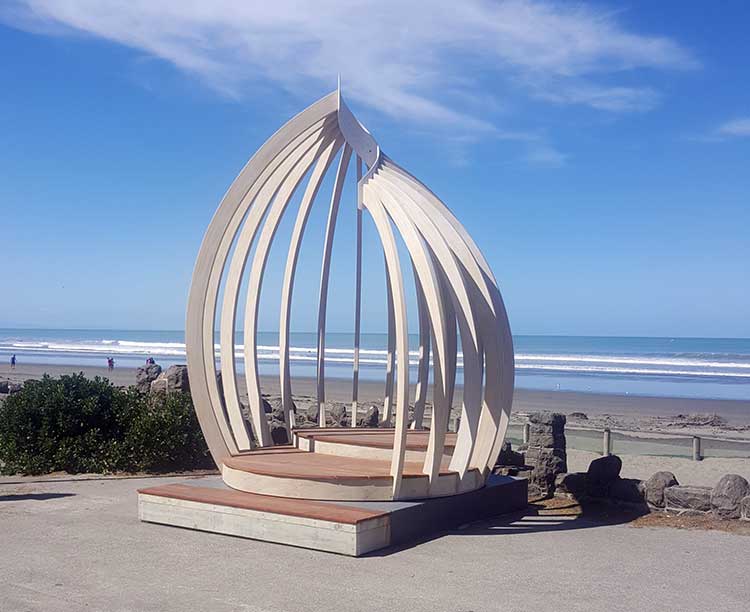 One of the tiny huts from last year’s design competition. Called the Shell Chapel it was designed by Ting Lin and built by Leighs Construction.