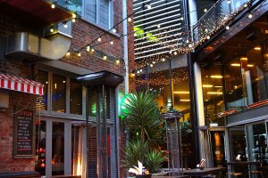 It looks like an enclosed street. The food looks tasty!