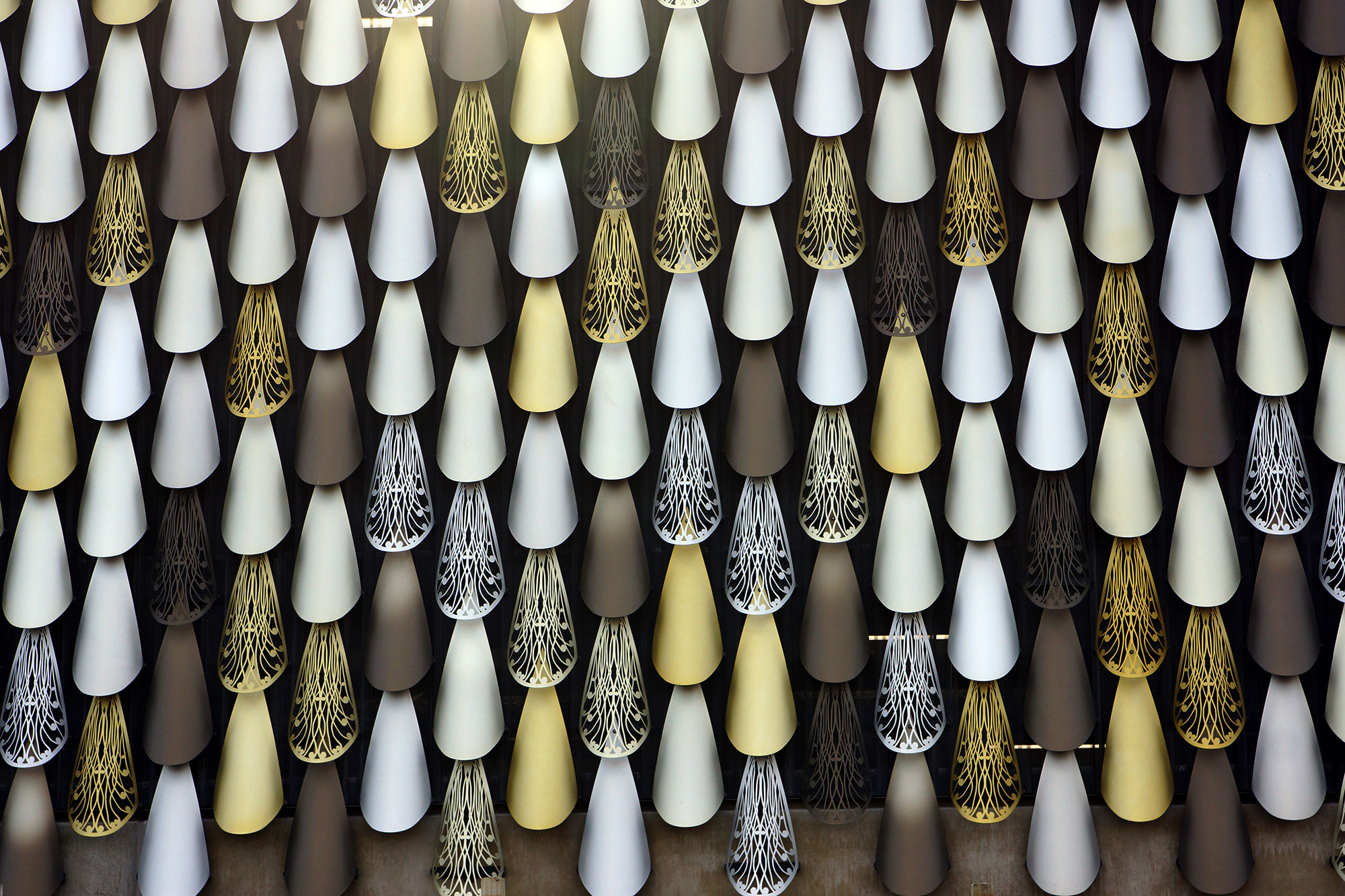 The image above is a close up of the stunning cloak design that is on the side of the carpark building for the Justice and Emergency Precinct.
