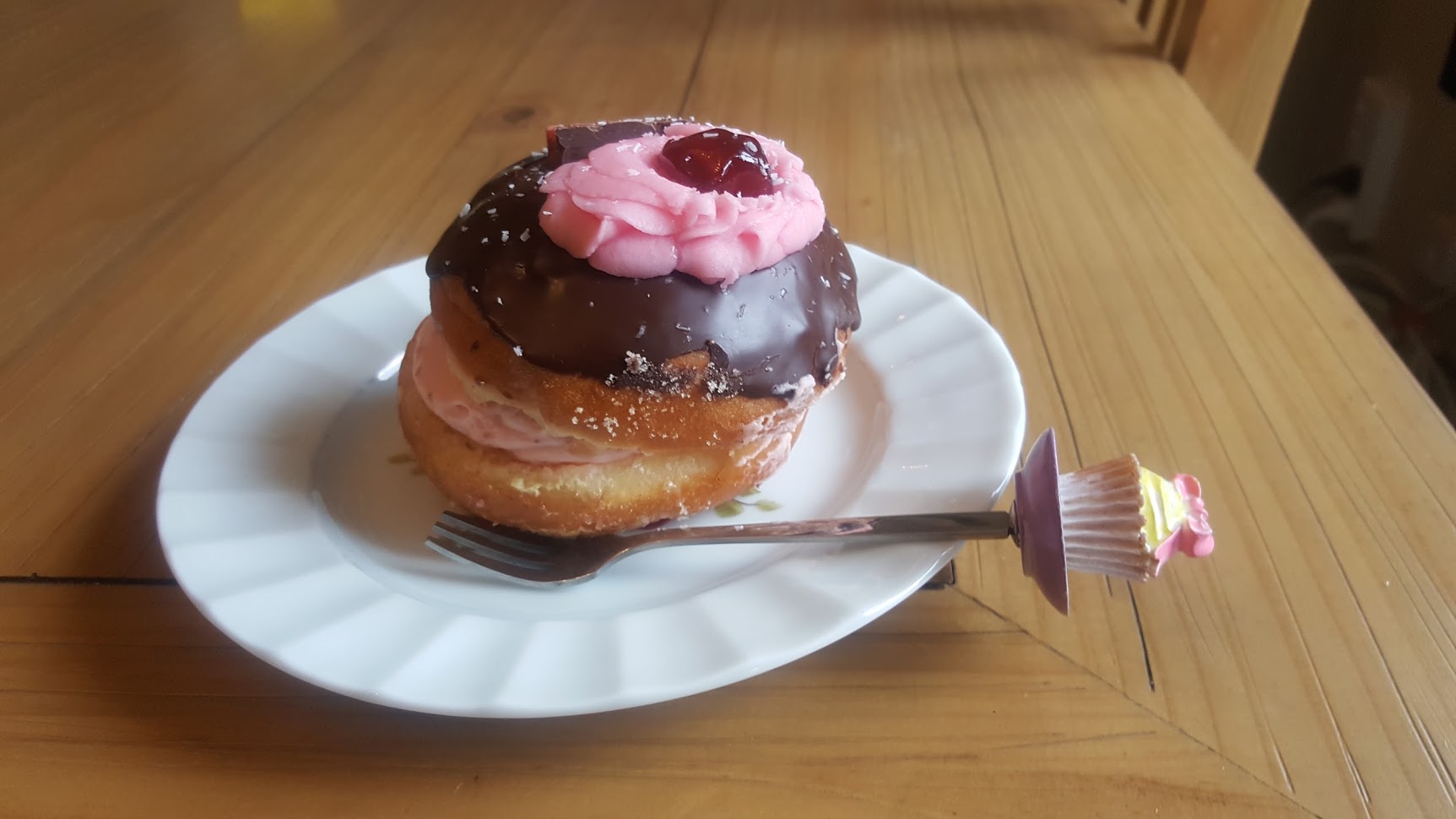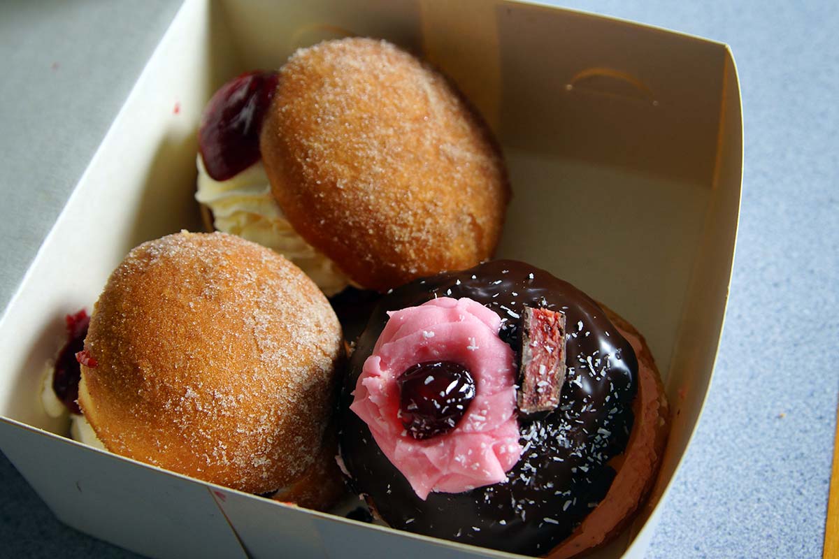 After a full-on work week, I needed to get some fresh air and decided I would treat myself to a doughnut from Glamour Cake in Lyttelton. It’s pretty bad weather-wise today, with flooding happening in parts of the city, so I thought I’d have a better chance of getting the doughnuts – as they sell out very quickly most days. Sure enough, they had doughnuts, so I bought enough for friends too. The offer of doughnuts was gladly accepted by my friends living near a flood zone.