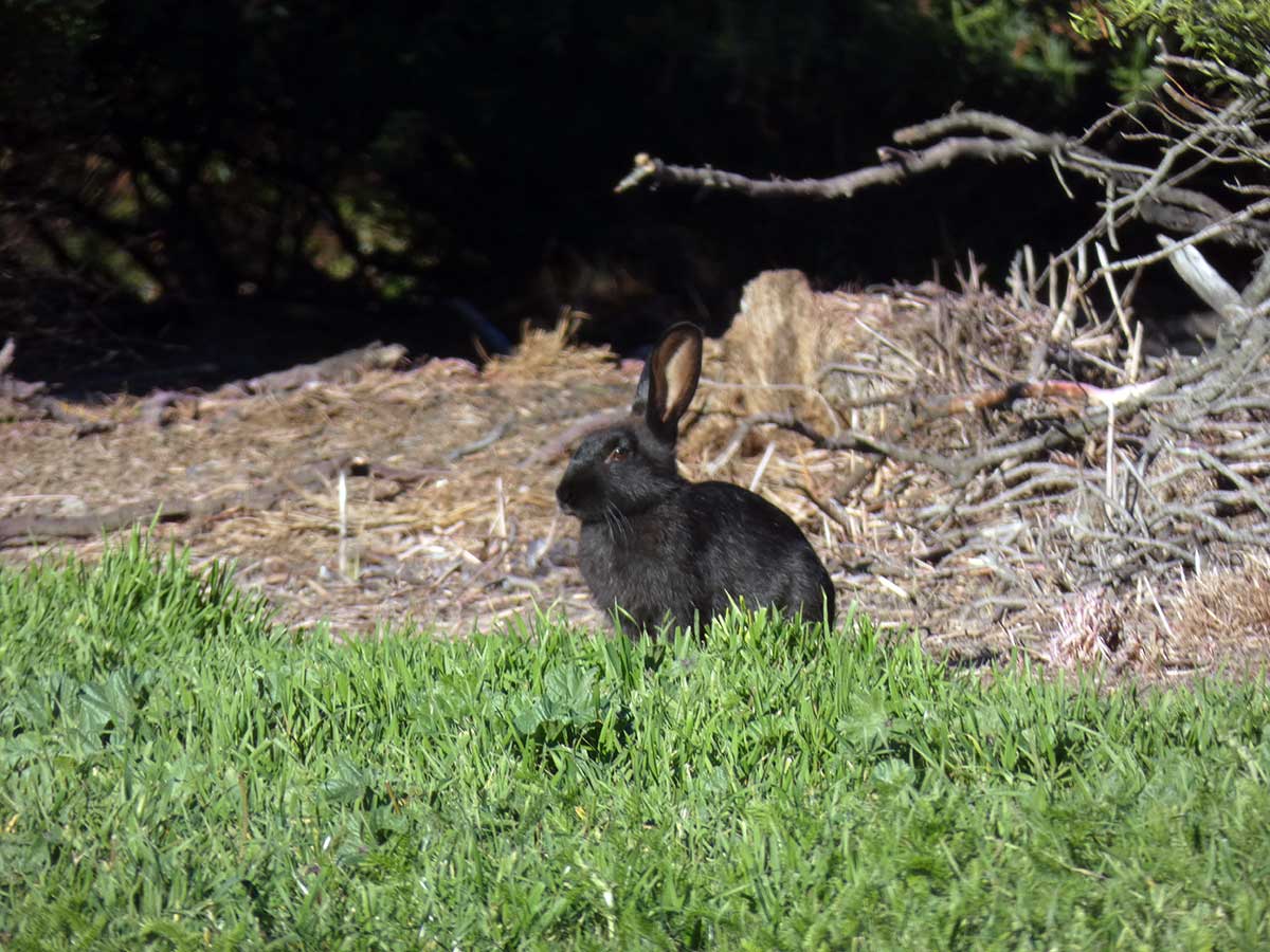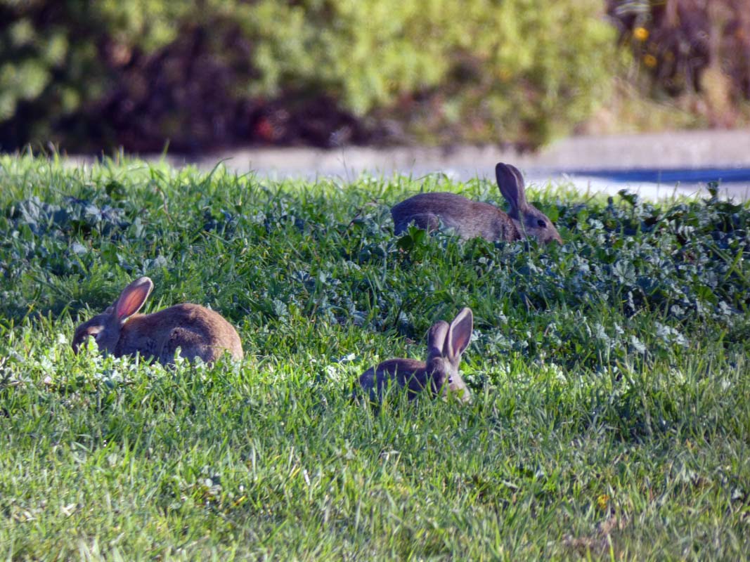 A while back, I’d heard about the roundabout bunnies, but hadn’t seen them. Today, while driving through the intersection there they were. So I had to stop for a few photos. Now this is a busy intersection, so it wasn’t that easy, and the bunnies are hyper-alert to people coming near the roundabout so they would run away back into the bushes if I got too close.
